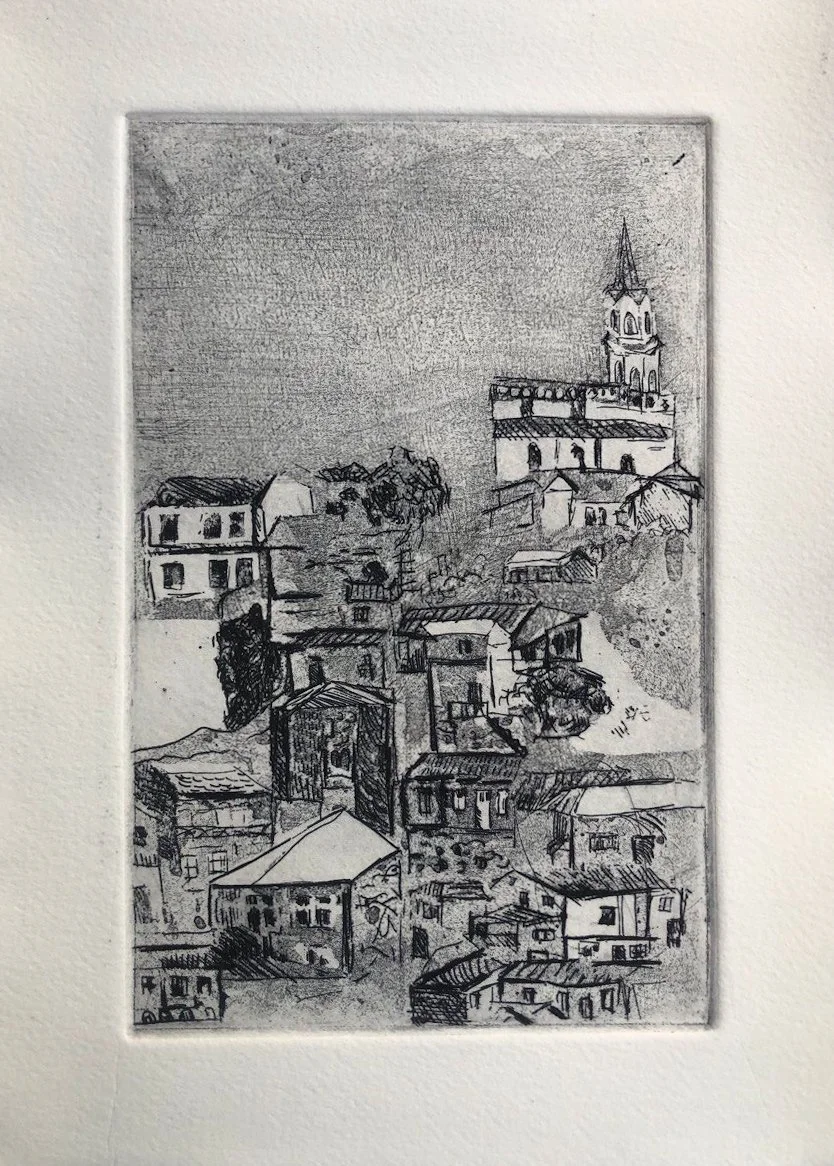 Valparaiso. Aguafuerte, lavisse, etching from aluminum plate. Printed at Taller Tinta Negra, Valparaiso, Chile. 2026.